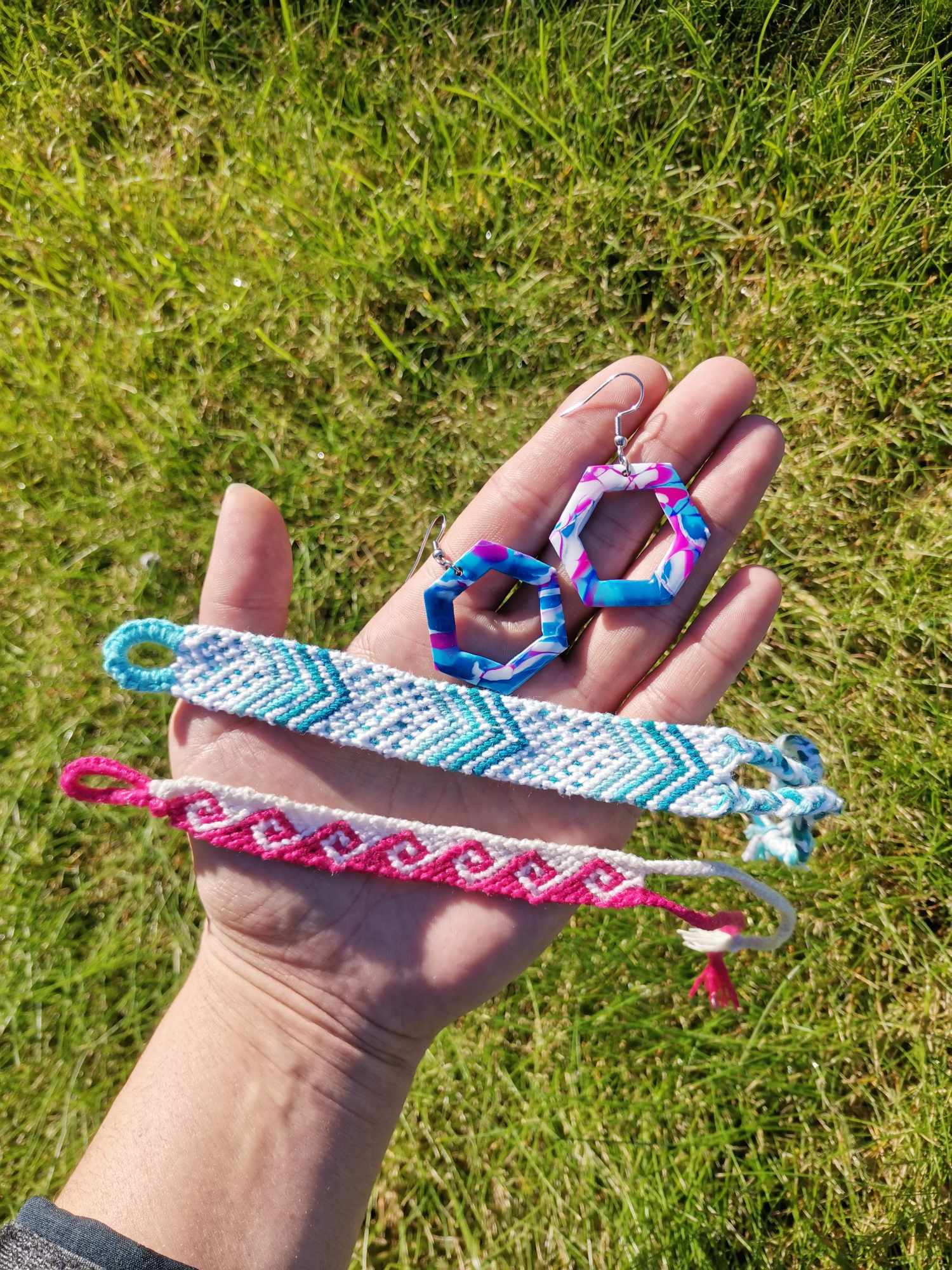 De geknoopte armbandjes zijn gemaakt van katoen of polyesterdraad. voelen zacht aan op de huid en staan lekker fleurig.