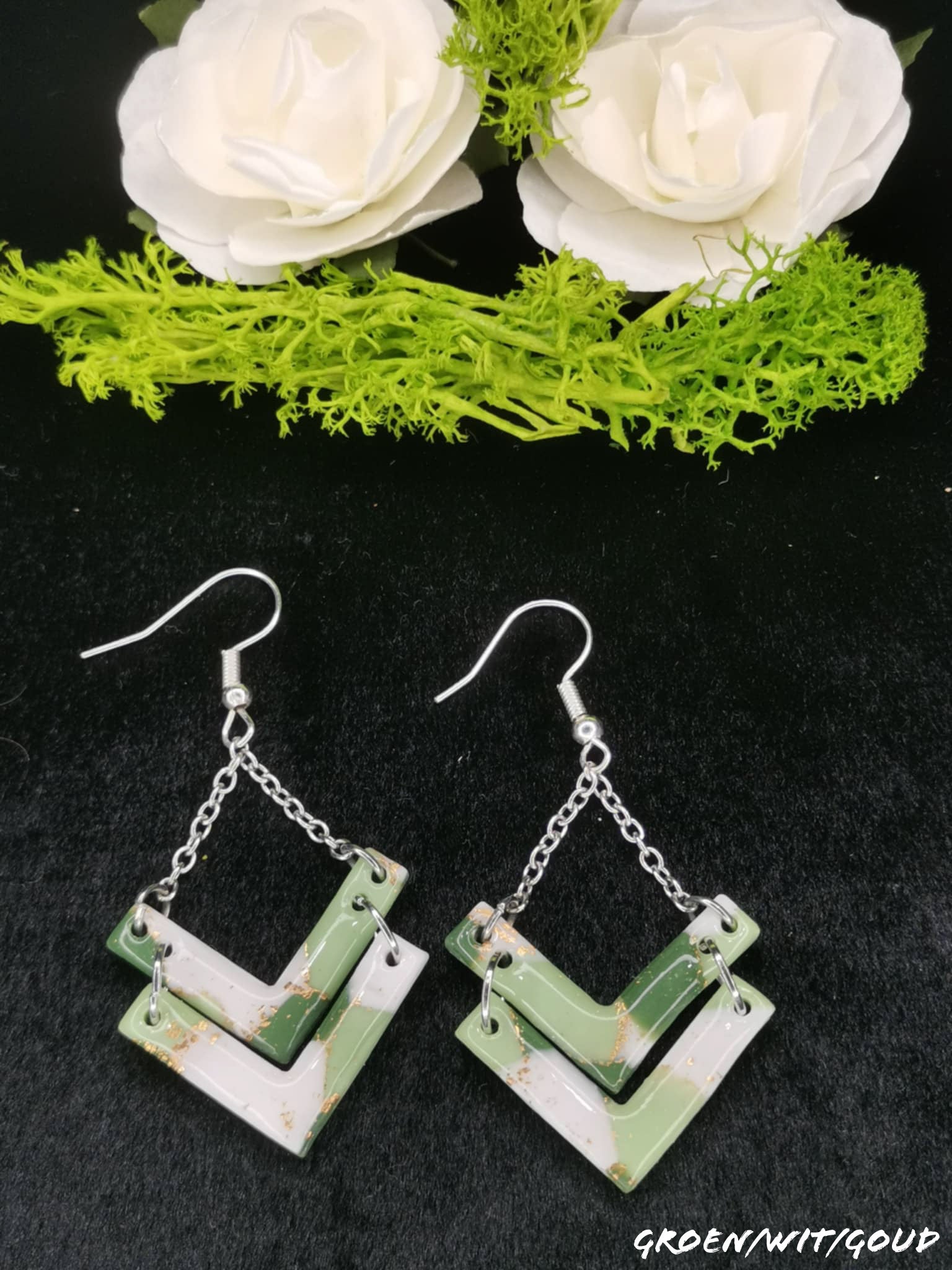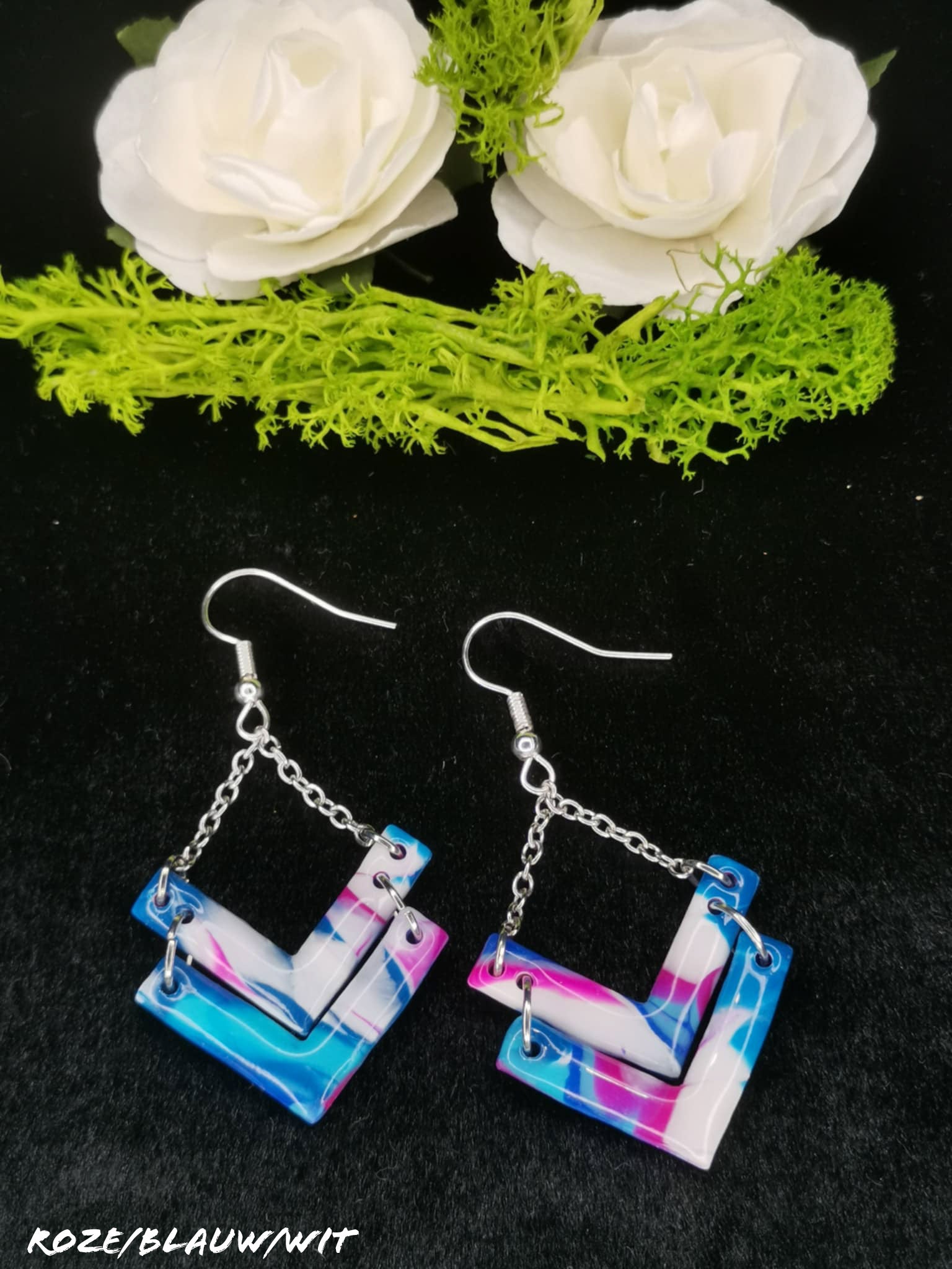 Lichtgewicht polymeerklei oorbellen met een glanzende laag epoxy. Het zijn handgemaakte oorbellen. Houd er rekening mee dat geen enkele oorbel hetzelfde is.